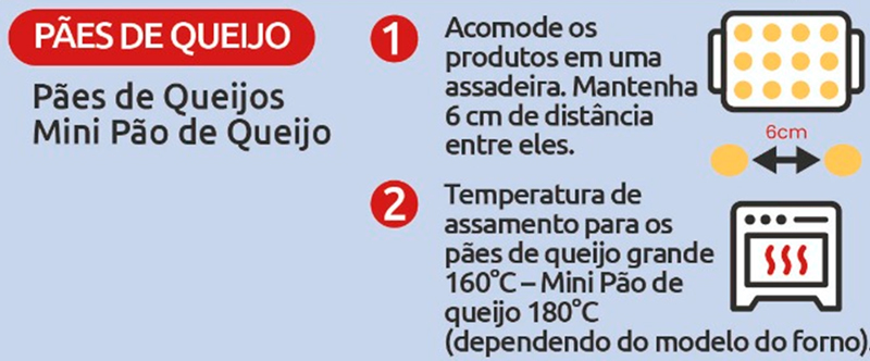 Água, amido de mandioca modificado, polvilho azedo, óleo de soja, ovo, margarina (gordura composta (óleo de soja*, óleo de palma, estearina de palma, e óleo de soja* interesterificado), água, 15.000U.L de vitamina A por Kg, emulsificantes: INS471 e INS322, conservadores: INS211 e INS202, aroma idêntico ao natural de manteiga, antioxidante: INS321, acidulante: INS330 e corantes: INS160b e INS100i, (*geneticamente modificados a partir do Agrobacterium tumefaciens e/ou Bacilus thuringiensis e/ou Delftia acidovoran e/ou Stenotrophomonas maltophialia e/ou Streptomyces viridochromogenes e/ou Zea mays), farelo de trigo integral, semente de linhaça dourada, queijo minas padrão (leite pasteurizado, cloreto de sódio, fermento lácteo e cloreto de cálcio e coagulante), queijo prato (leite pasteurizado, sal, cloreto de cálcio, corante natural de urucum e coalho e fermento lácteo), queijo parmesão, soro de leite, sal, semente de girassol, aroma de parmesão (sal, glutamato monossódio, soro de leite, siloide e queijo parmesão), extrato de levedura láctea, aveia, quinoa e chia.